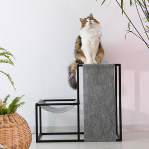 Ce beau petit arbre à chat Élégance multifonctions et modulable Made In France ravira votre chat pour grimper, sauter, griffer, jouer et se reposer. Placez les accessoires (hamac, griffoir et plateforme) selon vos envies pour s'adapter à votre déco et aux envies de votre chat. Fin et élégant, cet arbre à chat sublimera votre intérieur. Arbre à chat fabriqué en France avec des matériaux durables de qualité, vendu avec ses accessoires : hamac, griffoir, plateforme en bois..