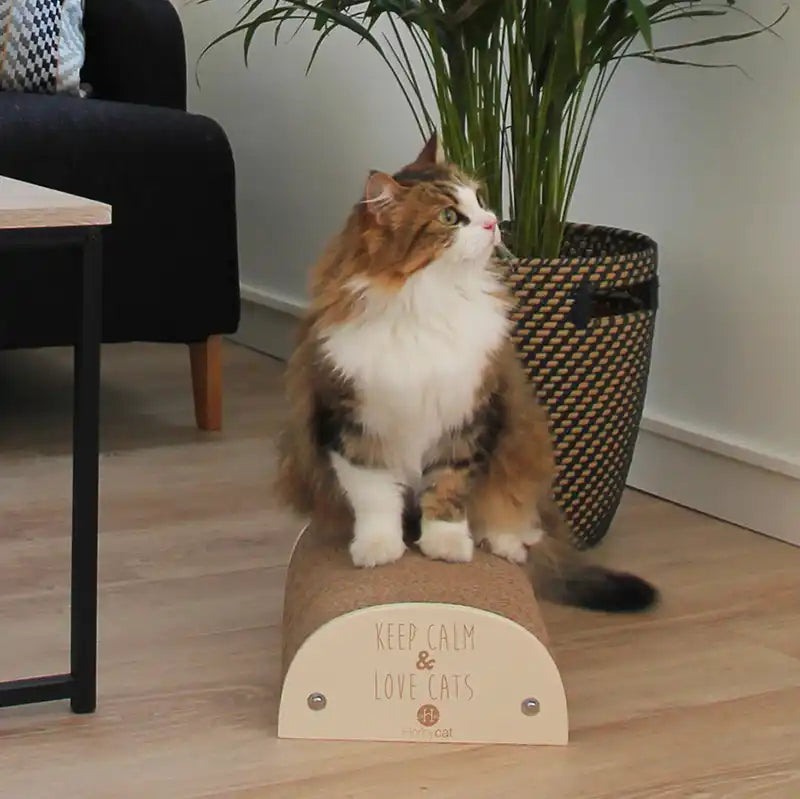 Votre chat griffe partout ? Rien ne sert de s'énerver, la solution, comme le dit la citation "Keep calm and love cats", restez calme et montrez-lui que vous l'aimez en lui offrant un griffoir Homycat !