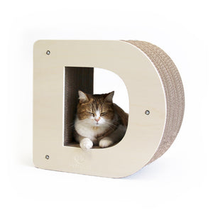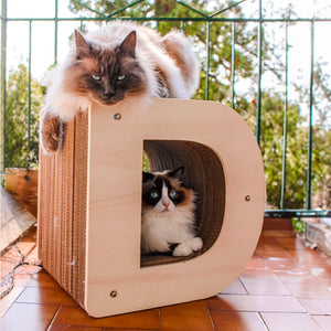 La double épaisseur de carton qu'offre le griffoir D XL permet au chat d'avoir un bel endroit pour se reposer à l'intérieur, tout en faisant ses griffades le long des plaques de cartons. Le format XL est idéal pour les grands chats. Les deux surfaces en bois et la visserie permettent ensemble de maintenir le carton et d'avoir une lettre griffoir solide et stable.