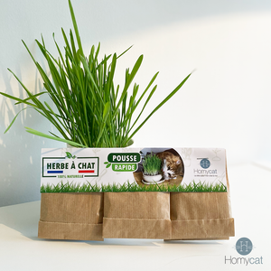 Faites plaisir à votre chat en plantant de l'herbe à chat française, c'est un bon moyen d'éviter les problèmes de santé de votre matou ! L'herbe à chat naturelle à planter répond au bien-être des chats, riche en vitamines et en fibres, elle stimule la digestion et favorise l'évacuation des poils avalés !