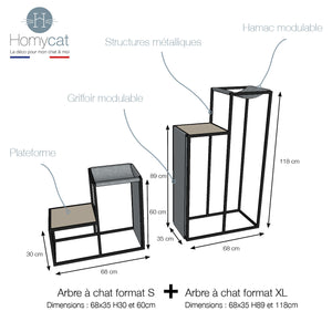 UN ARBRE A CHAT POUR PETITS ET GRANDS CHATS : au format S, XL ou XXL, les arbres à chat Homycat ont été conçu pour accueillir des chats de toutes tailles : arbre à chat pour grands chats type Mainecoon ou Norvégien, ou pour petits chats type Siamois.