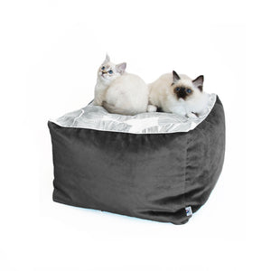 Enfin un couchage pour chats qui s'intègre dans votre déco ! Design, déhoussable, imperméable et confortable ce dodo pour chats Gris aux motifs Plume sera ravi d'accueillir votre minet. Les humains, adultes ou enfants, ainsi que les petits chiens peuvent eux-aussi en profiter !