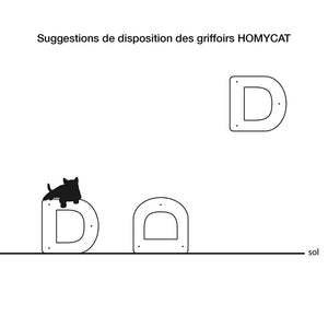 Une lettre D pour un griffoir Déco, Design et Made In France ! Votre chat aimera griffer le pan droit, se cacher à l'intérieur et observer en haut du D ! Pour un aspect plus "cabane" ou "niche pour chat" basculer-le sur le bord droit ;) Vous souhaitez plusieurs griffoirs ? Découvrez les Pack à composer avec des remises en fonction de vos choix : par ICI